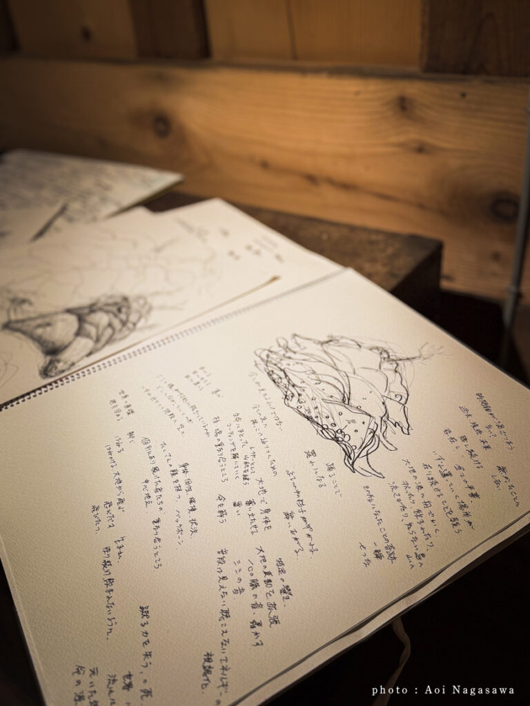 素材としてもモチーフとしても日々、山と向き合いながらフィールドワークを重ね、生命の根源や循環、記憶の痕跡を辿る旅を続けている。